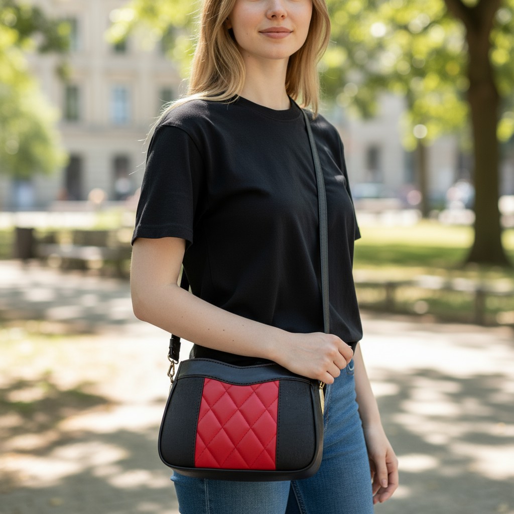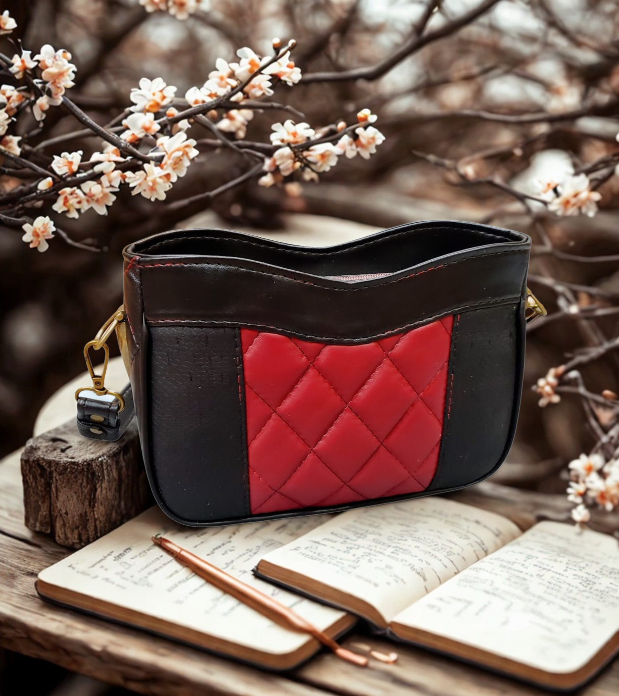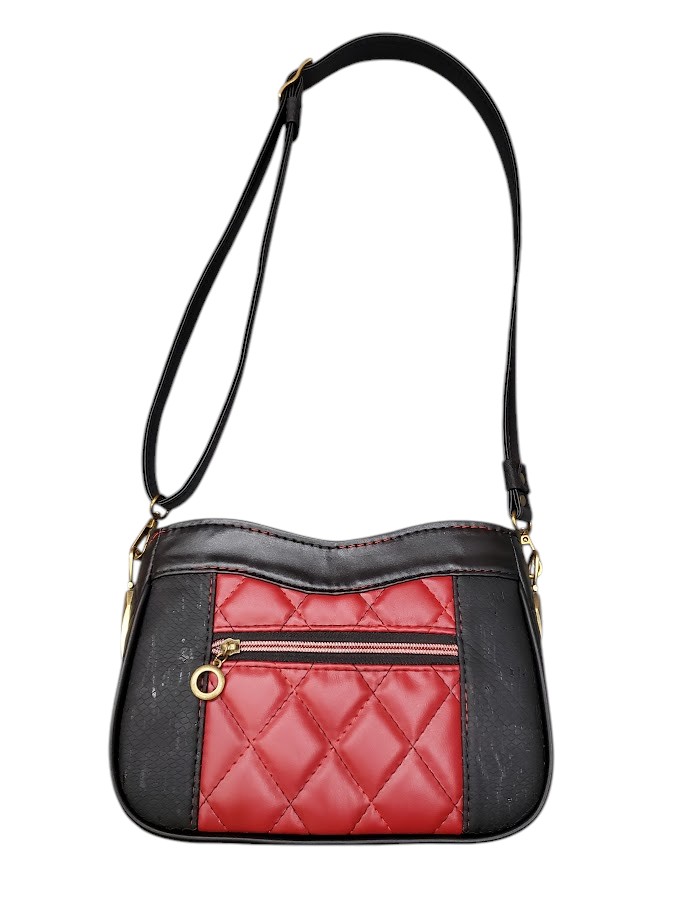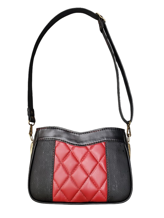 Elegant cute small Crossbody Fashionable designer handbag. Cork and Faux Leather, quilted front, back and sides, giving this extra structure.